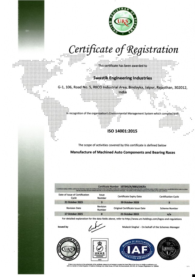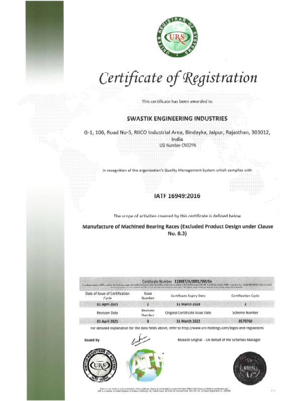 Swastik engineering industries is based in jaipur, india. swastik engineering is a known name for supplying of bearing races and precision components. Swastik Engineering Industries was founded in 1980 in the leadership of B. S. Sharma with a vision to work with leading bearing manufacturers. Over the period the firm has worked with pioneers in the industry. In the year 2003, Vinod Sharma joined the firm and started looking business operations. He is Post Graduate in Commerce from University of Rajasthan and also holds an MBA certification from Annamalai University.